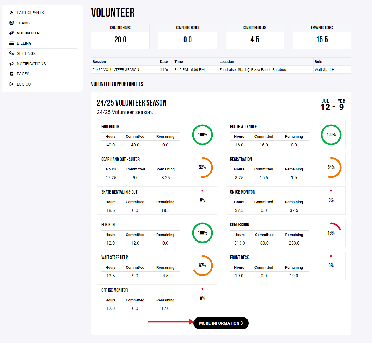 You will then be given access to our 25/26 volunteer hours area. This is web based only and can be accessed on your phone or computer via the website only.