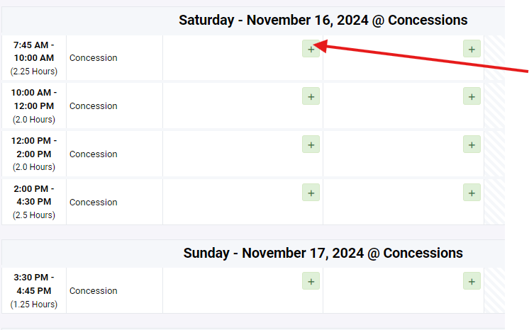 - Click + next to the hours you would like to work
